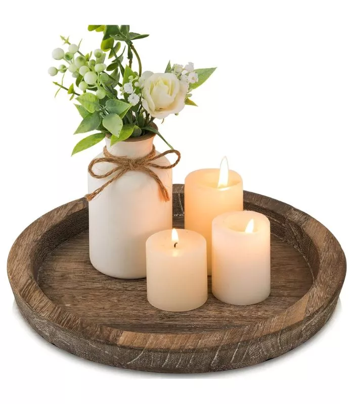 Hanobe Candle Plate Holder Tray: Round Wood